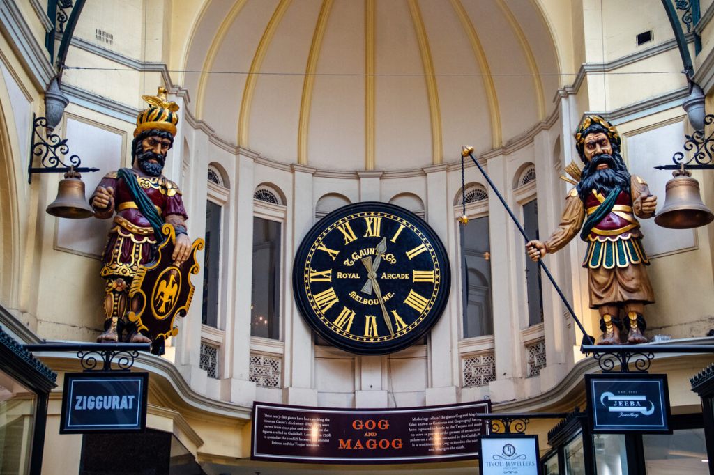 Gaunt’s Clock, added two decades after the arcade’s construction, becomes a stage for these mythical figures. Named after Thomas Gaunt, a Melbourne jeweler and clockmaker, it enhances the bustling atmosphere with its conspicuous presence.