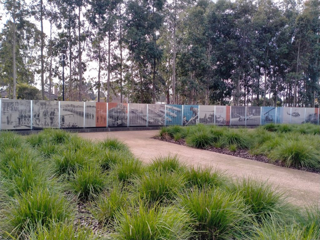 The journey doesn’t stop at images alone. Real-life relics from the war days are woven into the walk’s fabric. A Centurion tank, a Huey helicopter, artillery pieces, and an M1A1 APC bear witness to a bygone era. The surrounding landscape mirrors Vietnam’s essence, with spotted gums standing tall as rubber trees and native grasses swaying like rice paddies. These two plants, intrinsic to Vietnam’s landscape, transport you to the heart of the country.