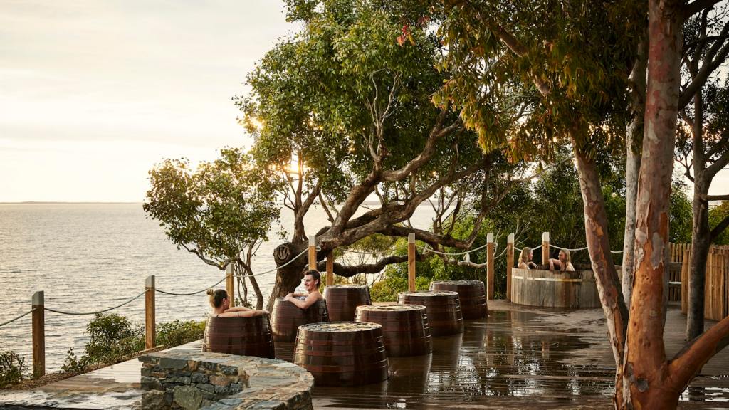 Nestled on a naturally rolling landscape, with sweeping vistas of the breathtaking Gippsland Lakes, they have breathed new life into the former Metung Hot Pools site, transforming it into a sprawling 25-acre oasis of relaxation and rejuvenation. Here, you’ll discover an extensive array of mineral-rich geothermal pools, each carefully crafted to enhance your wellness journey. Immerse yourself in these soothing waters, letting their therapeutic properties wash away tension and stress, leaving you feeling truly revitalized.