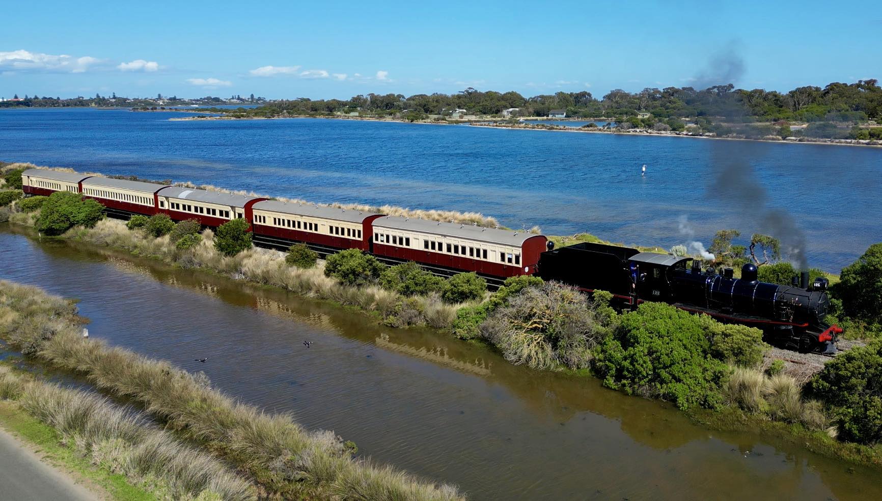 - Swan Bay express: offers a scenic 45-minute train journey along the stunning Swan Bay on the Bellarine Peninsula. Pulled by a century-old steam locomotive, you’ll ride in beautifully restored heritage timber carriages, reliving the golden age of rail travel.