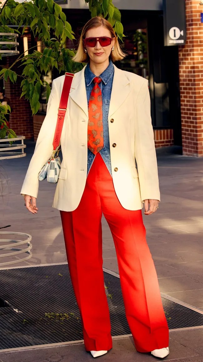 There’s colour again: burnt orange knits, emerald trousers, patterned scarves, vintage denim stitched with personality. Outfits feel less uniform, more expressive. It’s thoughtful, but playful. Curated, but not restrained.