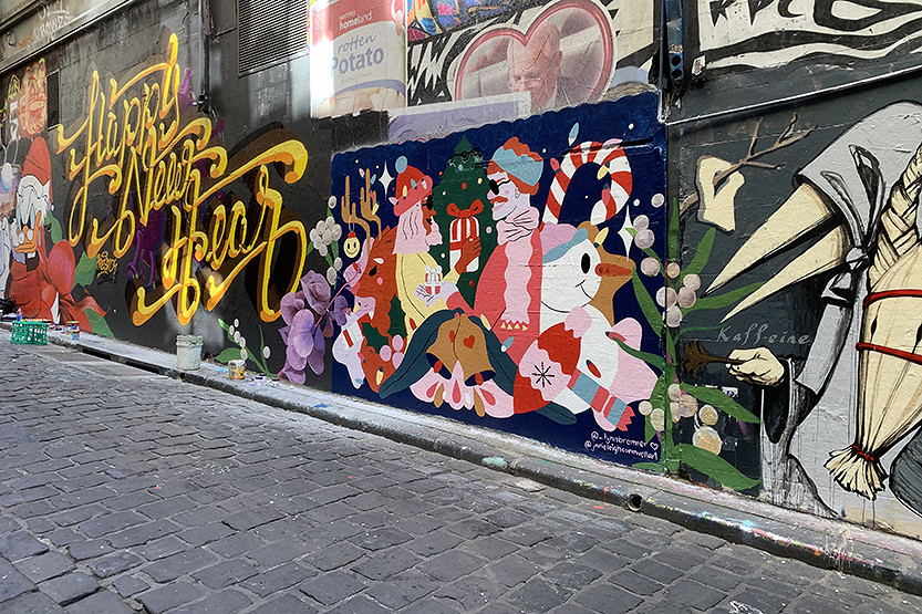 Hosier Lane is probably the most famous laneway in Australia and one of the most visited street art sites in the world. It runs off Flinders Street near Federation Square and has been a legal street art site where artists can paint over each other’s work continuously for decades.