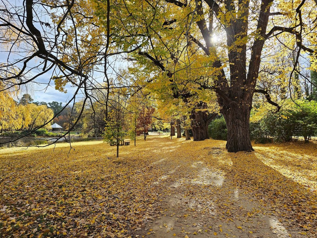 Added to the Victorian Heritage Register in 2000 for its historic, archaeological, aesthetic, scientific and architectural significance, Rosalind Park is one of the most layered public spaces in regional Victoria. The park’s autumn spectacle with its canopy of ancient elms, oaks and Queensland brush boxes turning gold against the sandstone of the surrounding buildings is described by locals and visitors alike as a “buttery,” warm transformation that persists well into May.
